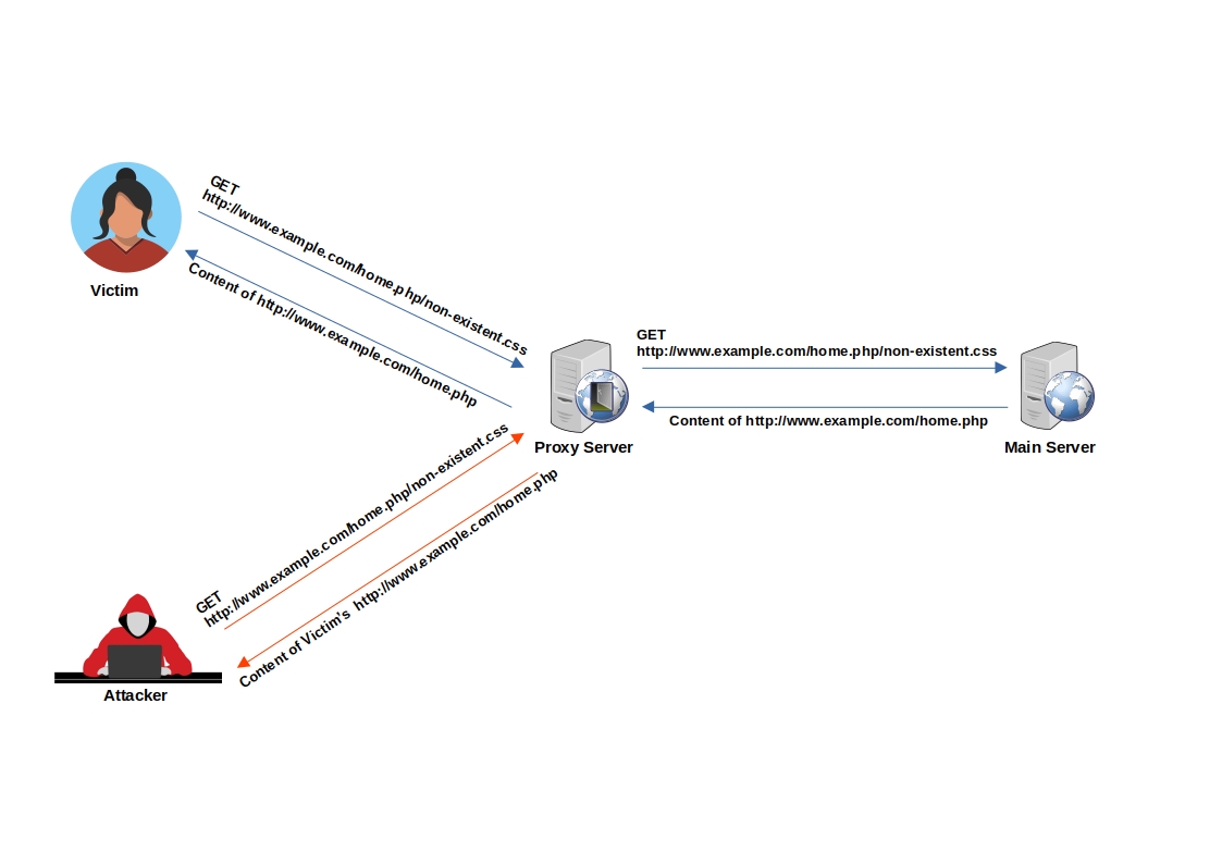 8. When the attacker requests http://www.example.com/home.php/non-existent.css, the request is sent to the cache server, and the cache server returns the cached file with the victim's sensitive home.php data.