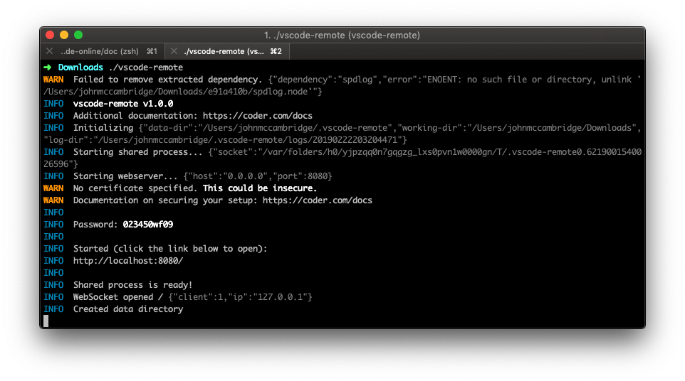code-server can be ran with a number of arguments to customize your working directory, host, port, and SSL certificate.