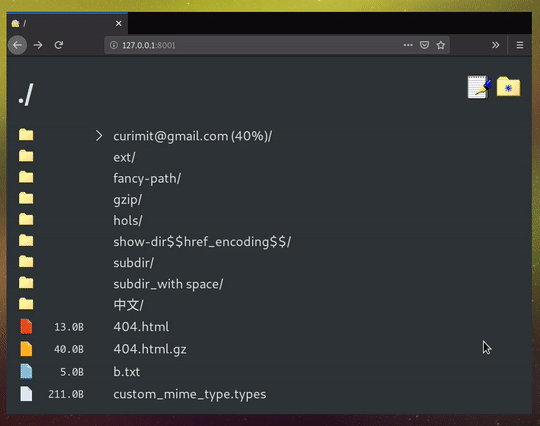 % sudo docker run -v ~/LocalDirToShare:/shared -p 8001:8001 pldubouilh/gossa